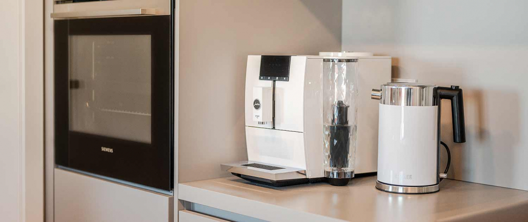 Im gesamten Appartement darf man eine exklusive Ausstattung wie z.B. ein Bluetooth Lautsprecher System von Bang & Olufsen, eine Jura Espressomaschine, ein Kochfeld von Bora uvm. erwarten. Freuen kann man sich ebenfalls auf einmodern eingerichtetes Badezimmer mit Regendusche. Für die Anreise mit dem E-Auto steht eine Mercedes Wallbox am Haus zur Verfügung.